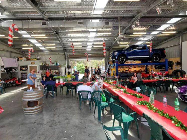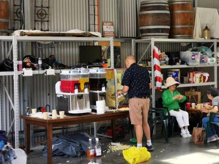聚会会场设在主人的户外独立餐厅里,类似农场的食堂。