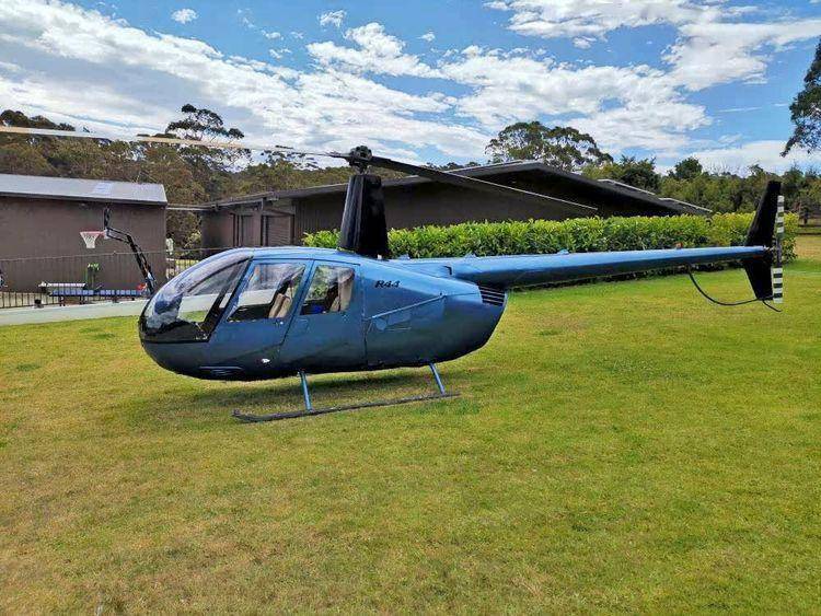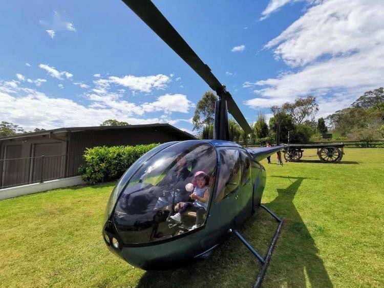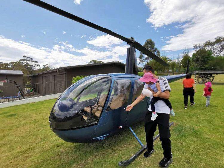 屋后的庭院通向山坡上巨大的草坪,上面停着一架小型直升飞机。