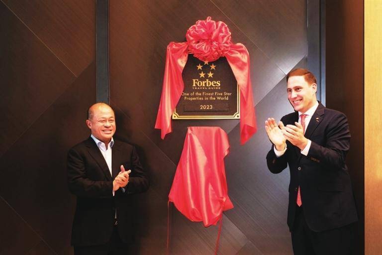 4月6日,作为深圳首家荣膺福布斯五星殊荣的奢华酒店,深圳文华东方酒店举行了2023年“福布斯旅游指南”的奖牌揭幕仪式。深业集团的代表嘉宾们出席了该活动,与深圳文华东方酒店的员工们共同见证了这难忘的一刻。