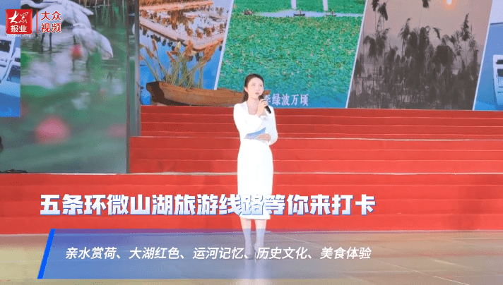 7月28日晚,微山县举办第三十届微山湖荷花节文旅推介会,现场推介了亲水赏荷、大湖红色、运河记忆、历史文化和美食体验5条环微山湖地区旅游主题线路。