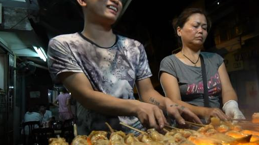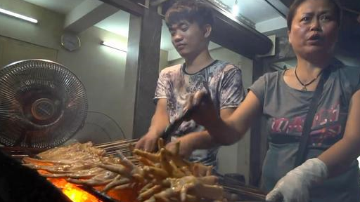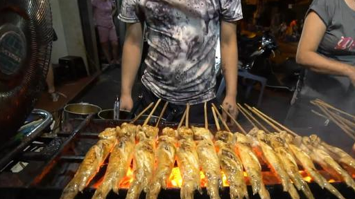 这卖烤鸡翅的摊位,是母子两人一起开的。这个儿子长得还挺帅的,他们的烤鸡翅也很便宜,一串才50泰铢,折合成RMB才10元的样子。这鸡翅有什么好奇怪的呢?为什么能吸引到我的?是因为这鸡翅和其他地方的鸡翅不一样,它太长了!
