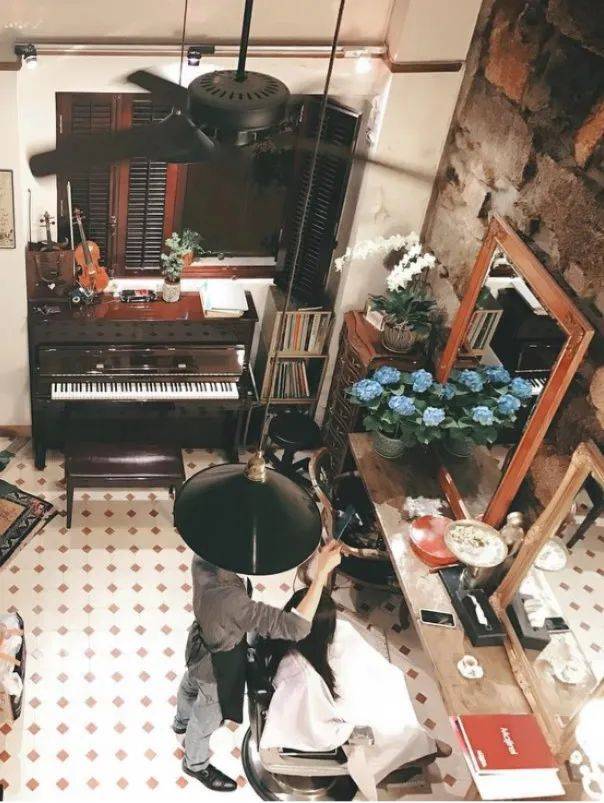 一楼是理发空间、二楼是私人音乐厅,三楼则是老板自己的住所,整个布满古典色彩的魔幻格局,剪完头发听个歌,还能拍几张照片。