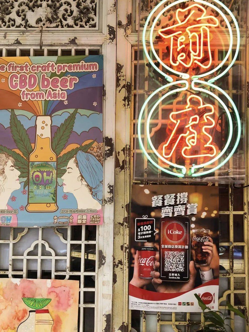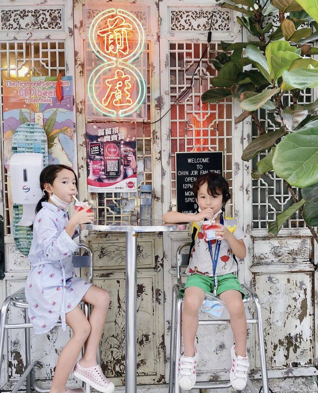 白天一般,但晚上非常吸睛的「前座饭堂」,以香港怀旧风为主题,旧式铁栏、红色霓虹灯、八十年代的电影海报,好像时光倒流四十年。