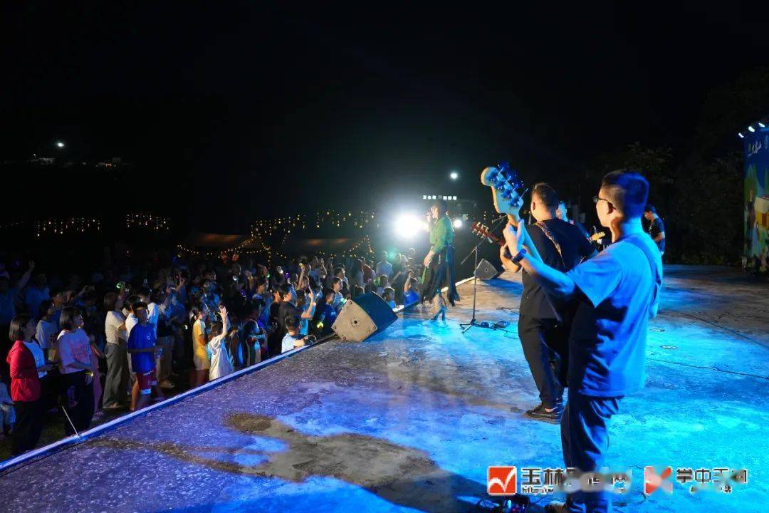 热闹的星空灯光露营狂欢音乐会。