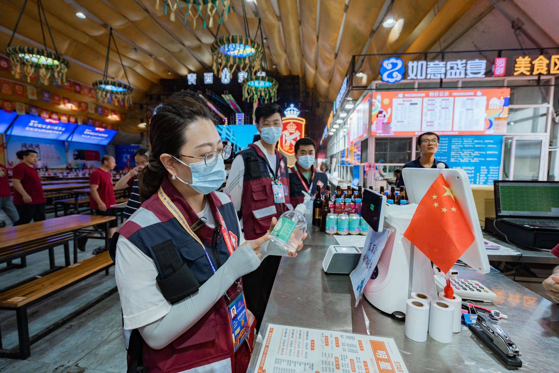 为了做好啤酒节期间的传染病防控和突发事件应急处置等工作,区卫生健康综合行政执法大队、疾控中心对金沙滩啤酒城及周边公共场所、饮用水、集中消毒餐饮具进行了拉网式检查,监督指导落实各项卫生安全措施。