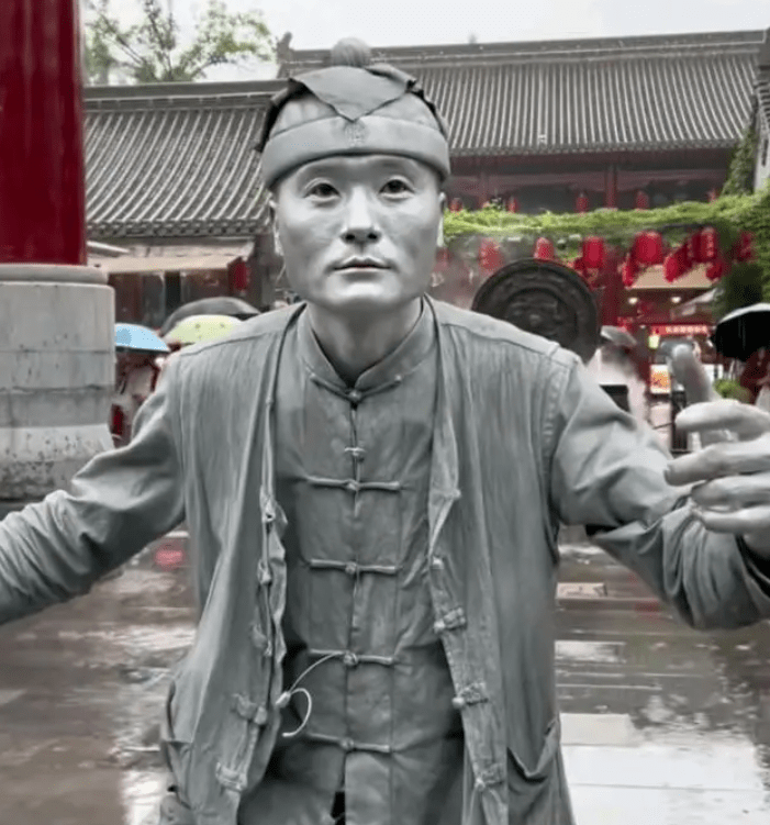 “银人阿少”被誉为全国第一街头“银人”,他这些年一直在街头坚持一个动作造型,要摆几个小时纹丝不动,眼睛也不眨一下。不管天气多冷多热,他摆的造型姿势都是一丝不苟,工作期间也不乏一些游客前来挑逗、对视和恶搞的,但是他都始终保持雕像的正义、严谨、目不转睛的表情,成为当地的网红“活雕塑”。