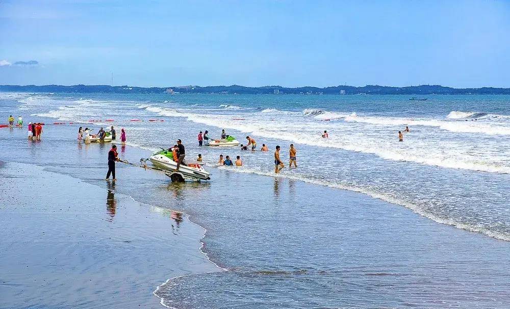 集沙细、浪平、坡缓、水暖于一身,无污染,海水清澈,是广西继北海银滩之后的又一滨海旅游热点。