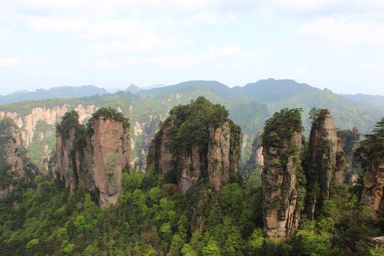 6. 张家界:位于湖南省张家界市,以其壮观的岩石奇景和云海漫步而著称,也是《阿凡达》电影中“潘多拉星球”的灵感来源。