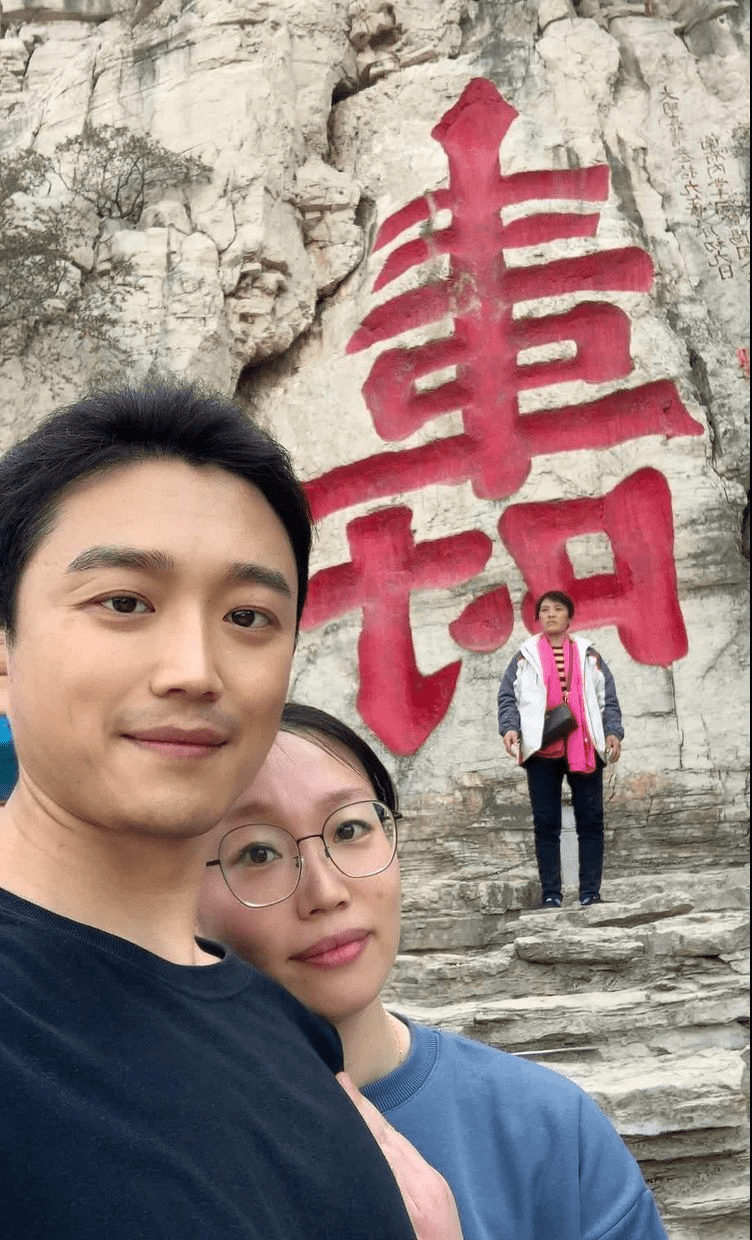 我与妻子的留影,喜庆之意,凡心无它,漫随天外云卷云舒。