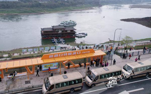 游客在磁器口特钢渡口下船后,可凭购票凭证免费乘坐接驳车,前往磁器口古镇游玩。