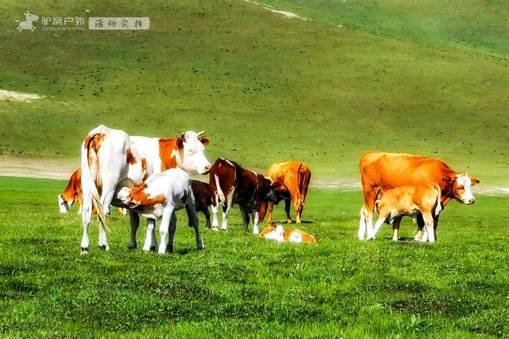 北沟地势平坦,草质鲜美,是牛羊们最爱聚集的地方,它们在这里饮水嬉戏,或在林子里奔跑追逐,或在蓝天下悠闲地晒着太阳。
