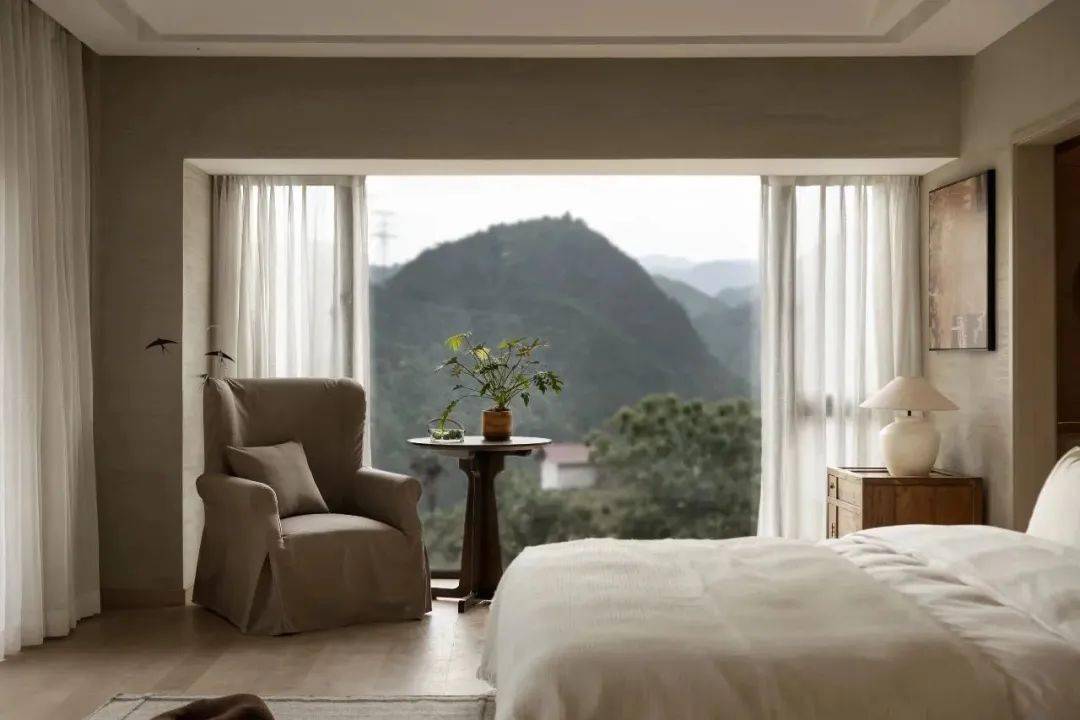 设计上的留白,让视线更多得向户外的山野间舒展。