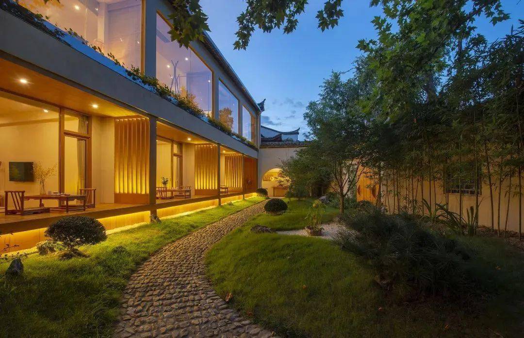 民宿内花木苍郁,竹影斑驳,静谧优雅,鸟语花香。这里有栩栩如生的古法雕刻供宾客鉴赏,溪上咖啡馆、酒吧等供宾客休闲娱乐,更有老街商铺各种传统工艺文化馆、景德镇瓷茶文化馆等供宾客选购欣赏。