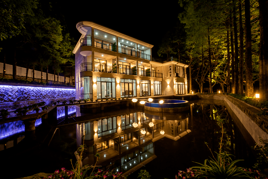 原址为双龙水电站旧址,在原有基础上将其改造,保留了两台80年代的水轮机可供旅客参观。庭院内设有无边泳池,大小泳池适合各个年龄段的客人游玩,同时住在这里还能欣赏到金华城的夜景。