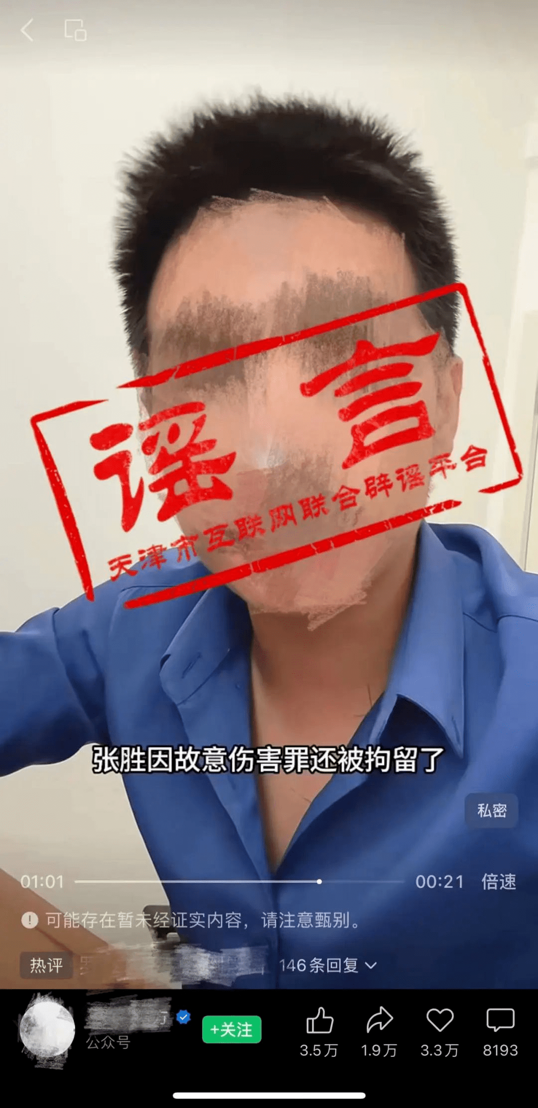 6.出租车司机救出被拐女孩摊上事?天津辟谣:近日,有“自媒体”账号发布“天津好心司机救出被拐女孩,自已却摊上大事”的相关视频。经查,该信息不实,天津市并未发生视频所述事件。现公安机关已受案调查。(天津辟谣)