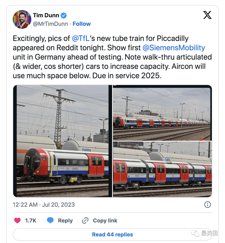 早在2021年,伦敦交通局TfL就宣布斥资15亿英镑为Picadilly线购置94辆光鲜亮丽的新列车。Bakerloo、Central、Waterloo&City 3条线新列车也即将投入使用。