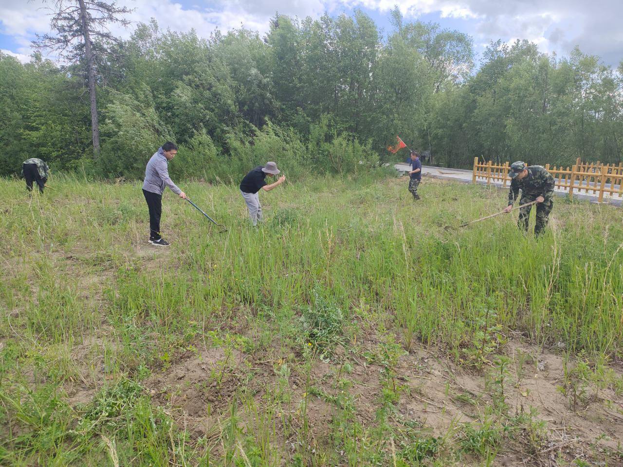 人大代表对瓦拉干白桦林山庄景区,景观设施、桥体木板、护栏、河边防护栏等进行检查,并对白桦林山庄进行了清洁打扫。大家积极发挥带头表率作用,争当环境清洁员,清理山庄杂草、石子等,确保山庄及周边安全干净整洁。