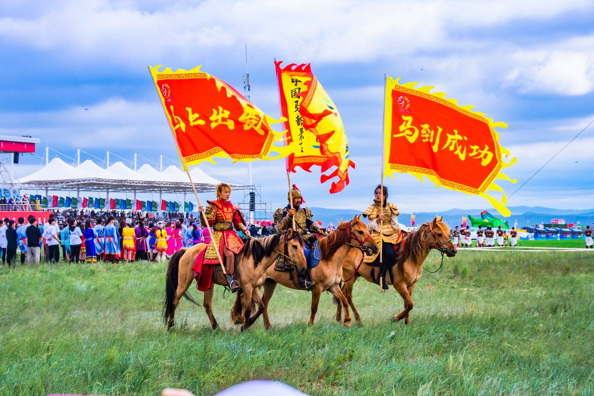 开幕式上的表演充满了创意,传统民族服饰和潮流审美碰撞,浓烈的色彩和独特的样式成为草原中一道靓丽的风景。