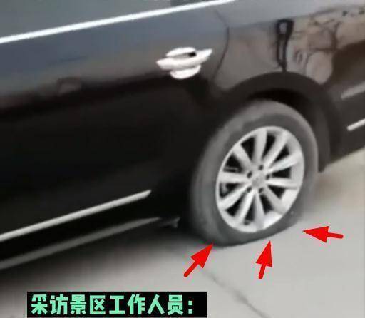 爆料的视频中,诸多车辆停在去往景区的路边,而未停在景区规划的停车场,路的一侧,是农田。从画面中看,车辆并未停在农田里,但是,一辆辆车轮胎被扎破放气,有的车辆前后胎都已经便瘪。这下游客返程就很麻烦了。