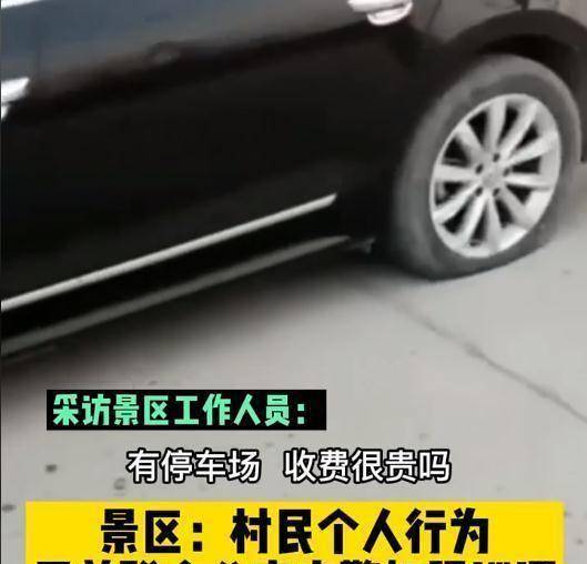 视频中,有采访声音说:“景区那边为什么停车在路边,车会被放气的。”对此,景区工作人员回应称:“派出所这边给我们这边的答复就是听到那个村民的卖地里面。”
