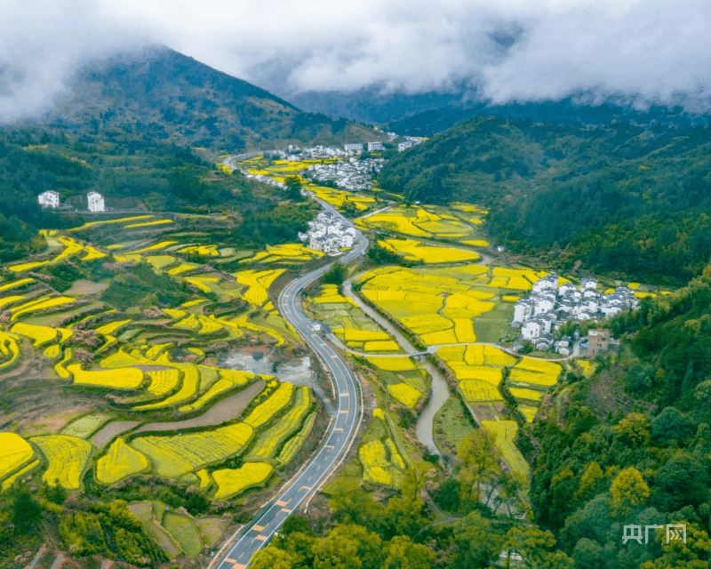 另一边,S303浙临线婺源岭脚至浙源段公路穿梭进了“中国最美乡村”江西省婺源的油菜花田。这里花开正艳,升级改建后的公路宛若游龙,嬉戏在仙境般的山水田园里。