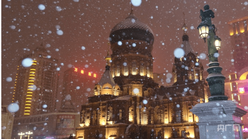 雪花在圣索菲亚教堂四周飞舞,如童话世界(央广网发徐旭摄)