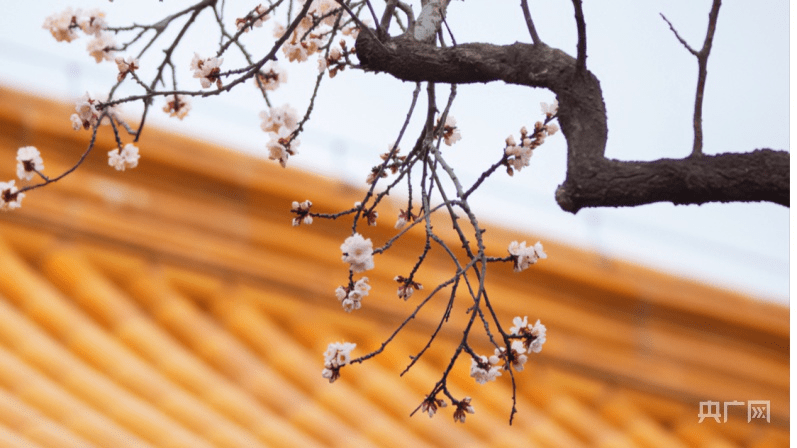 杏花与黄瓦绘成一幅绝美春日故宫画卷(央广网记者朱冠安摄)