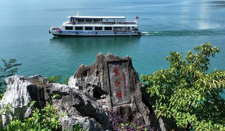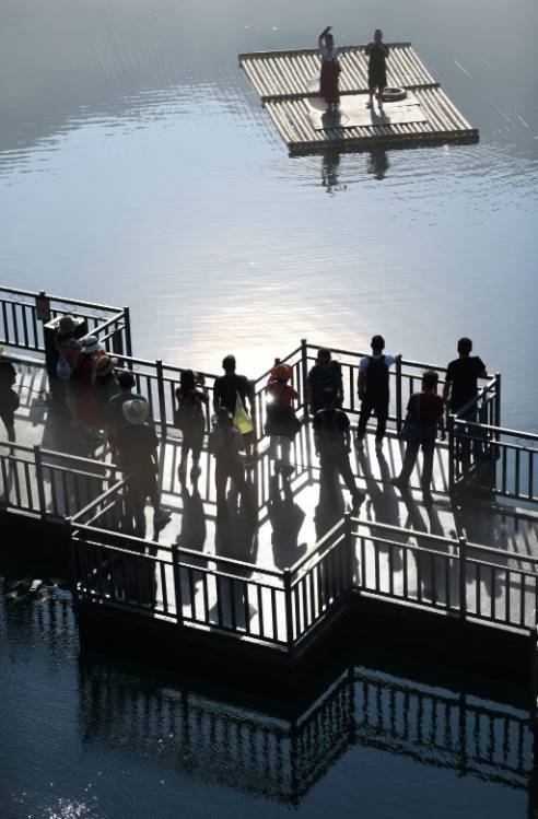 7月26日,游客在湖南省资兴市小东江游览。新华社记者 赵众志 摄