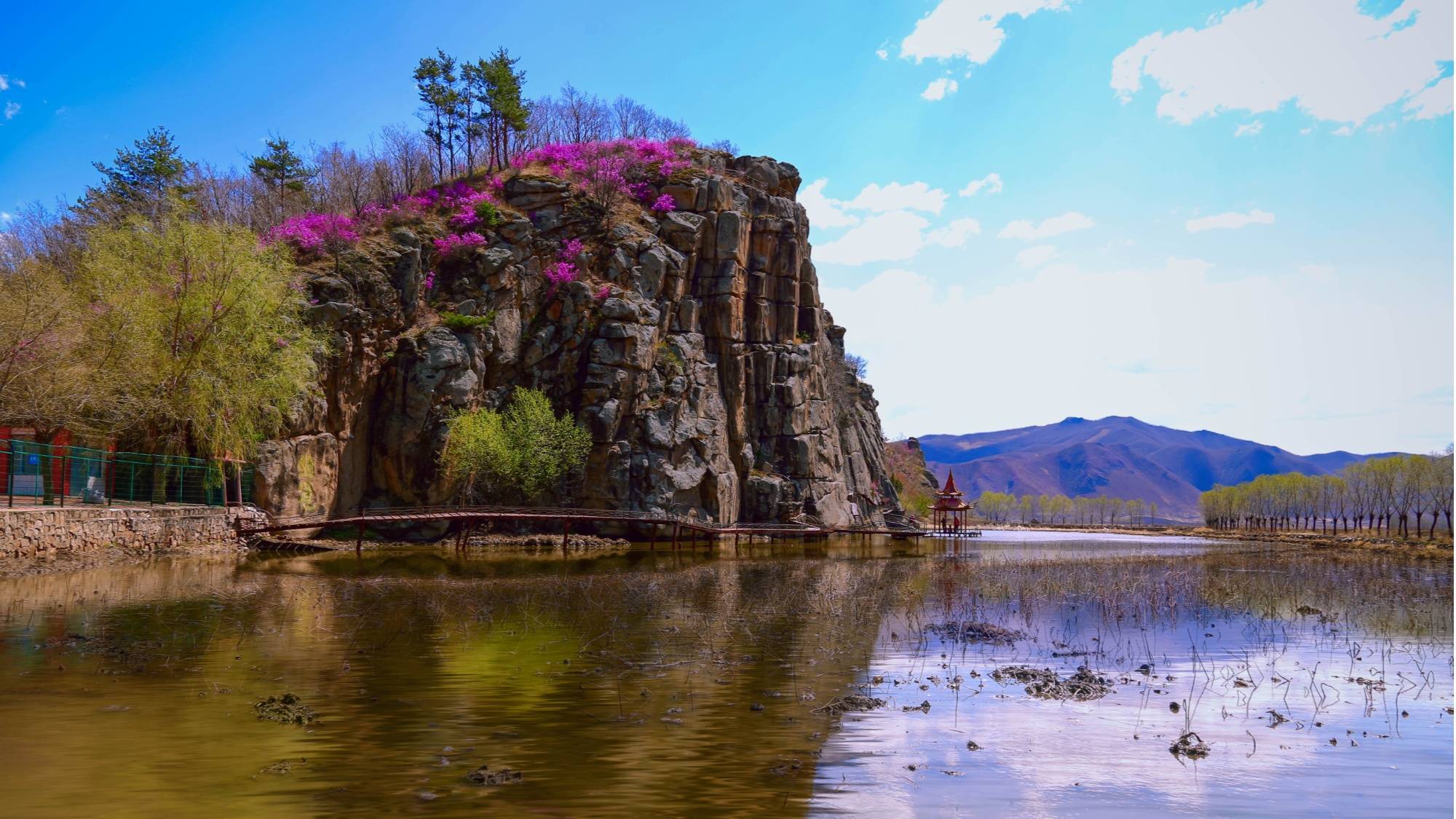 物华天宝,人杰地灵。江西古城、沿江古城、留有渤海时期石刻的字砬子、清朝驿站……一处处静默于天地间的古老遗址,是时光隧道中最鲜活的印记,印证着莲花渊深厚重的历史根脉。革命烈士陵园、将军洞、抗联瞭望点……一处处熠熠生辉的红色地标,无声讲述着那段战火纷飞的岁月,告诫世人居安思危,勿忘国耻。周保中、杨贵珍、姚新一、张奎……一个个染血的名字,将家国情怀、初心使命刻入莲花人的基因,融入莲花人的血脉。莲花文化中不仅有古朴与血性,更有风雅与卓然。置身莲华寺,伫立大佛前、游走殿堂间,佛香、檀香、沉香缭绕中,静听晨钟暮鼓、经声佛号,浮躁的心灵就此得到抚慰。香火旺盛的仙人洞、千人认母的千年古榆还有莲花盆、妖精泡……一个个神话传说寄托着莲花人国泰民安、生活幸福的美好愿望,也给这片土地增添了几分神秘色彩。这,大概就是莲文化的意义所在。