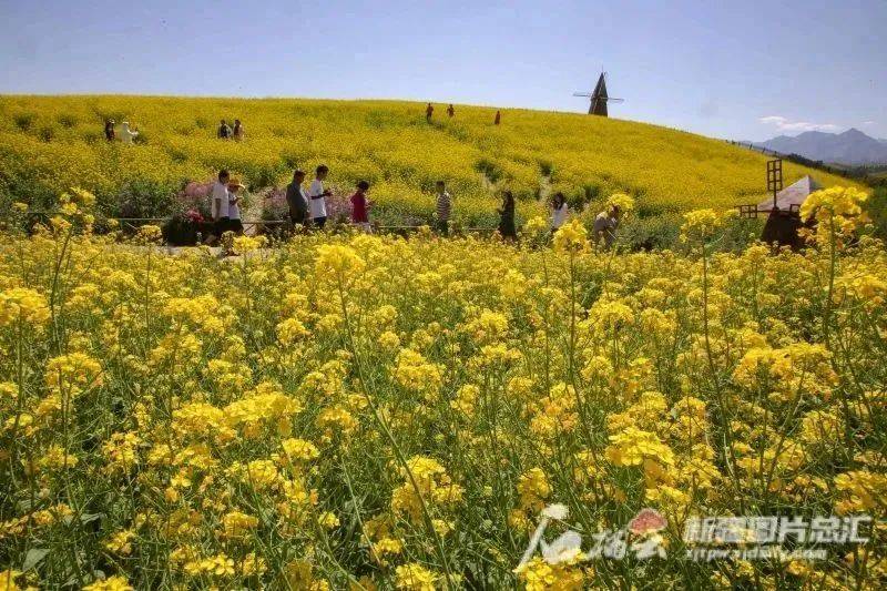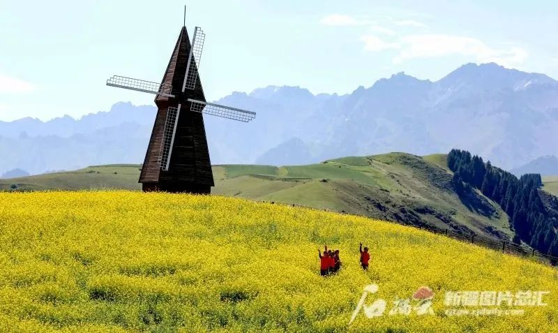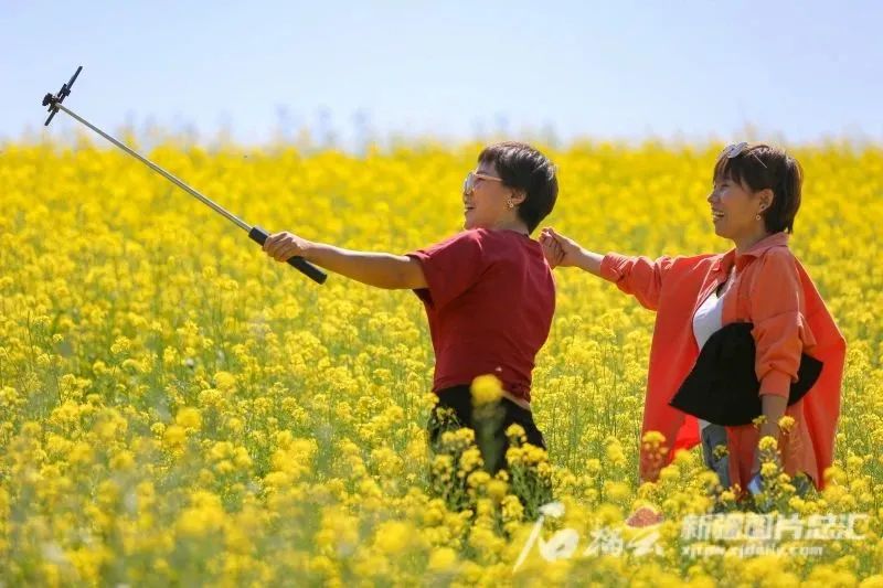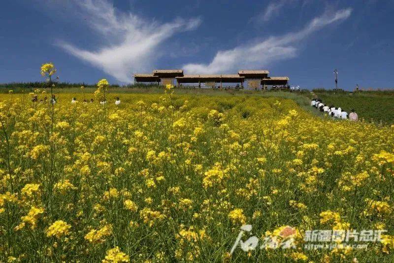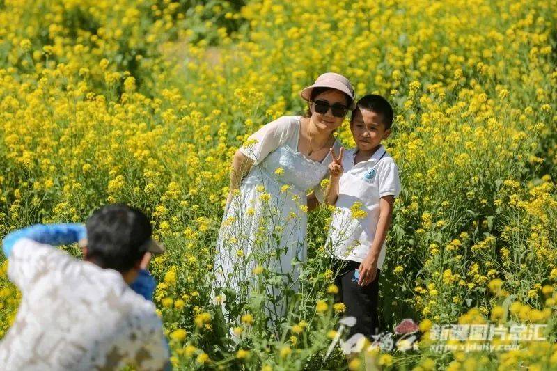 进入7月,江布拉克景区内的油菜花次第开放,微风吹过花香四溢,吸引了众多游客前来打卡游玩。