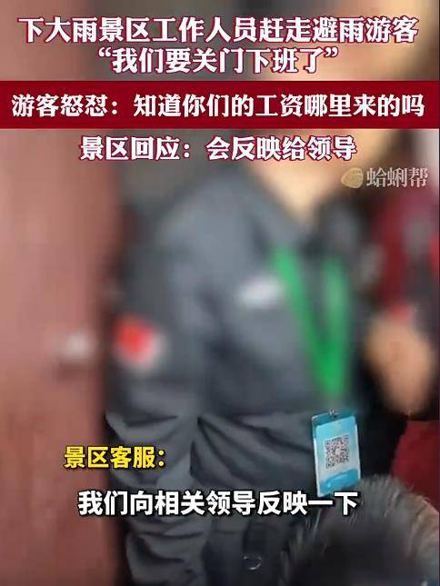 此事也是引发了网友的热议,有人认为景区工作人员应该提供更好的服务,让游客感到舒适和安全。毕竟,作为旅游景区,其主要目的就是为游客提供美好的旅游体验和服务。如果工作人员不能满足游客的基本需求,那么他们就失去了自己的价值和意义。况且又是下大雨的天气,提供一下避雨场所,这样才是人性化服务。
