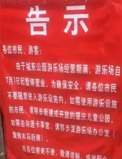 端州区城东公园游乐场贴出告示,
