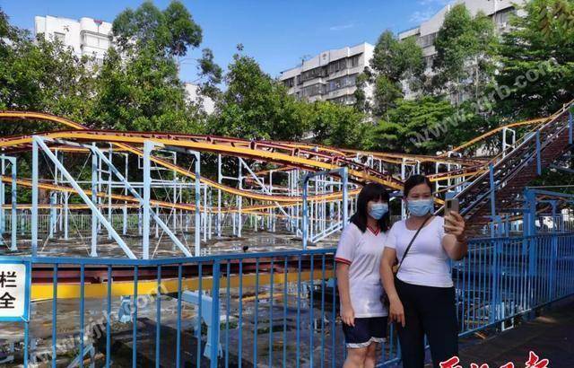 得知城东公园游乐场停业,市民纷纷前来合照留念。西江日报记者戴福钿摄