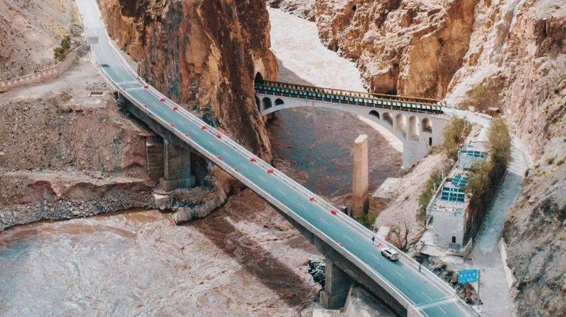 而在高山峡谷之间,怒江大桥犹如一把利剑直插山脊,以踏浪激昂的气势,将康藏天路进一步推向拉萨。这,就是被称为“川藏线咽喉要道”的怒江大桥。而在新旧怒江大桥之间,一座老桥墩静静矗立,凝望着湍急的水流,往来车辆路过时,都会自发向它鸣笛致敬。
