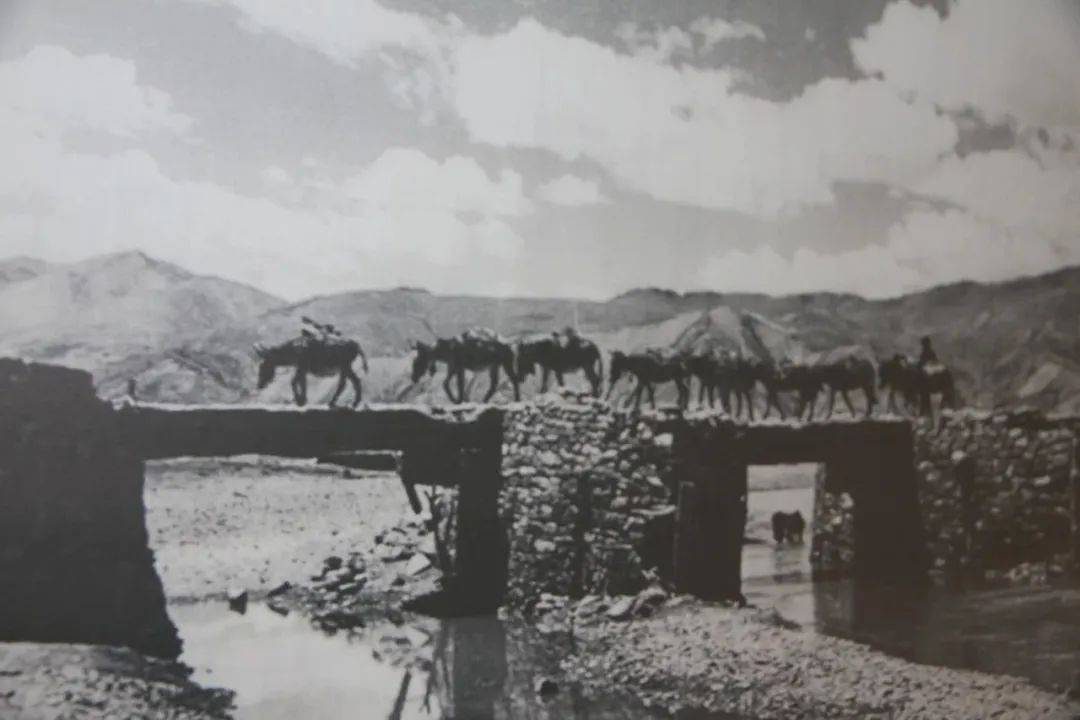 不只是道路险绝,在西藏和平解放前,没有任何现代意义上的工业企业,只有一些传统的小型家庭手工作坊,效率低下;没有公路,货物全靠人畜驮运,人马牦牛行在悬崖峭壁之上,只有一条单薄的木板;没有桥梁,渡河只能通过牛皮船……