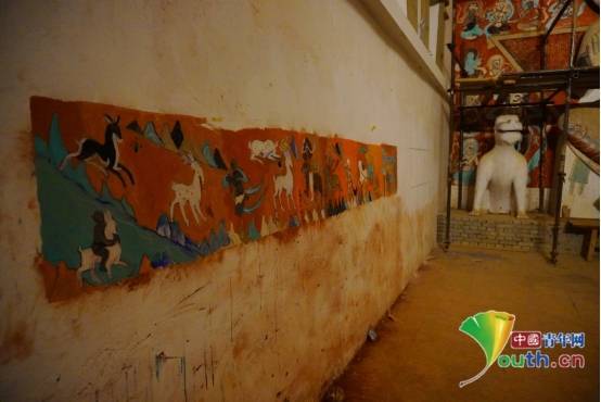 学生完成的壁画临摹。 中国青年网记者 曹迪摄