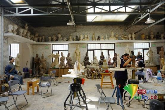 学生在进行彩塑制作。 中国青年网记者 曹迪摄