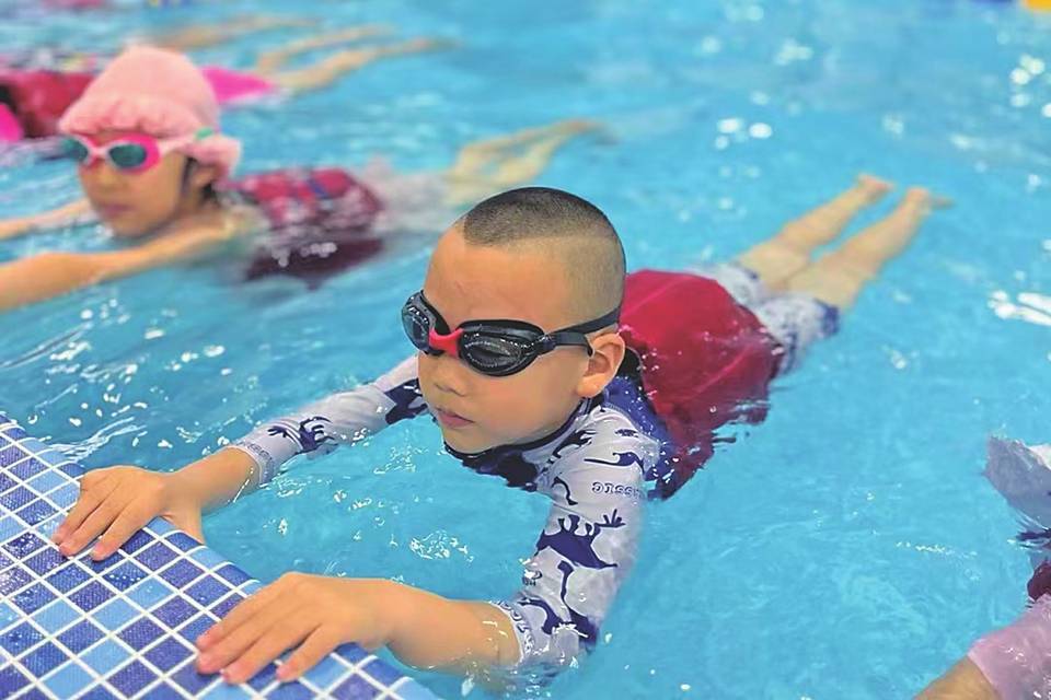 暑期正在游泳馆里学游泳的小朋友。本报记者张剑雯 实习生王碧莹摄