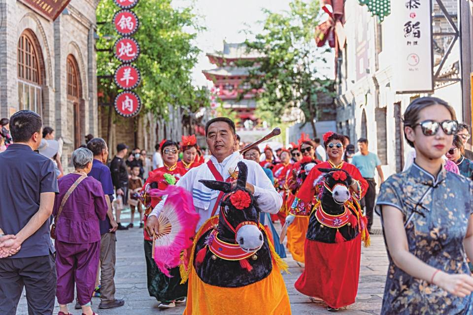 轻煮时光慢煮茶,三五好友聚一堂,在美食云集的小吃街,品一品忻州杂粮美食,择一处院落尝一尝农家乐的特色滋味。在茶楼听戏打牌、谈笑风生,各路好戏连连上演,带着边塞风骨,唱得淋漓尽致。着一席汉服漫步街巷,无须矫揉造作,也无须刻意摆拍,一颦一笑皆入画,绿意的古城总有一种风景值得驻足。剪纸、面塑、陶艺……集结忻州非遗传承人,复苏古城记忆,老忻州的手作与现代文创在这里交融扎根,民间艺术在这里生生不息。忻州古城的市集生活总上演着不同的精彩,新潮好玩的潮乐市集、红火热闹的南门市集、充满故事的古玩市集,在这里可以邂逅心头好物,遇见不同的生活与态度。