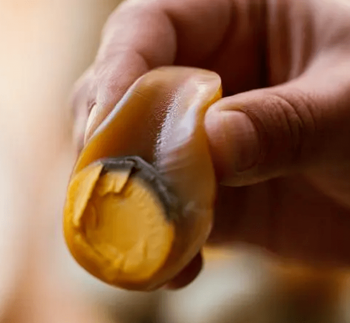 当蛋清和蛋黄发生明显变化,蛋清呈现出美丽的花纹,剥壳后呈现出黄亮的色泽,闻起来香味浓郁,食用时口感极佳。张包蛋的生产工艺非常考究,通过对“选蛋”“配料”等环节的严格控制,有效地避免了重金属和沙门氏菌等有害物质存在于包蛋中的问题,同时能保持包蛋的质量长达半年之久。