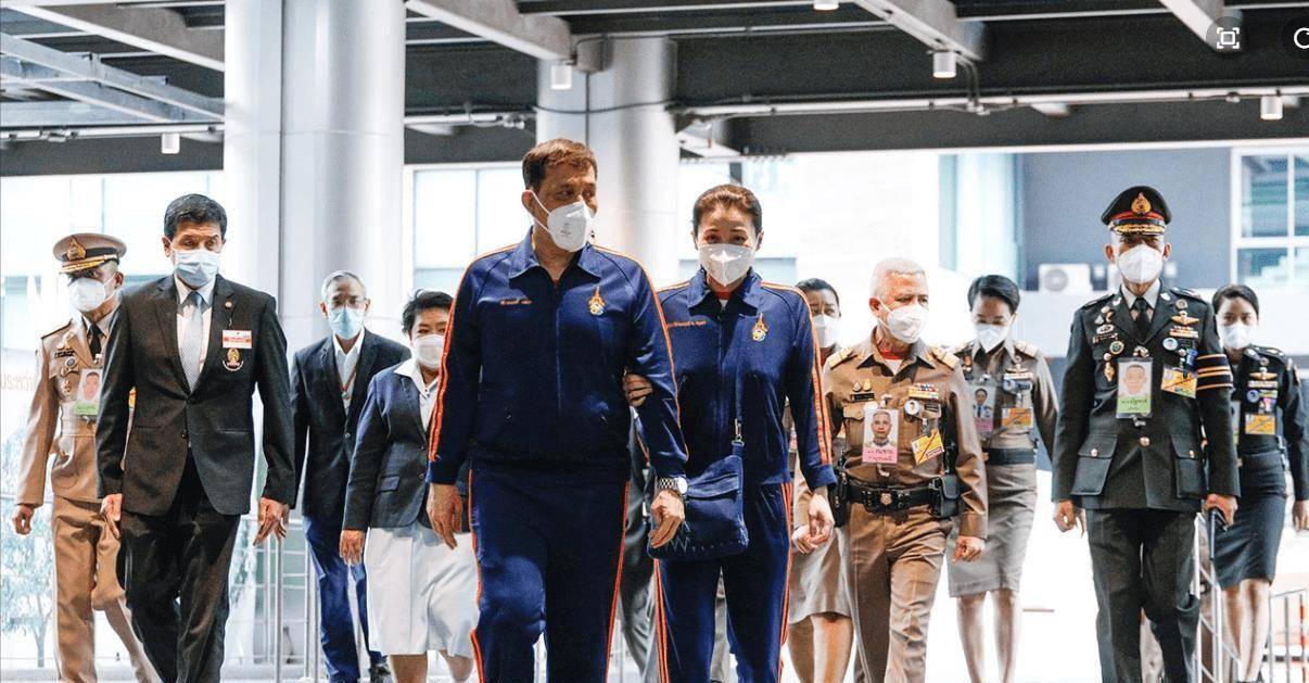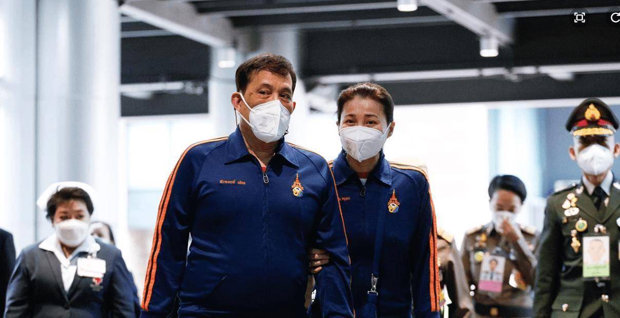 苏提达挽着摩诃王的手臂,老夫少妻一起出现在医院里!国王面无表情,心情沉重,王后对着镜头微微摆出表情。尽管他们都戴着面具,但他们能感受到他们的心情;背着蓝色布包的她,朴实、亲切、接地气。