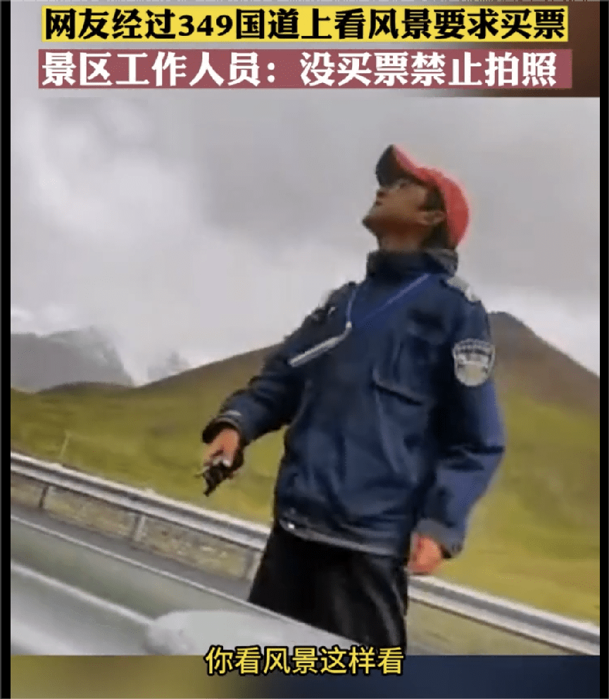 本来风景就是给人看的,如果在特定的景区内,收费还可以理解,但是站在国道边看风景要收费的话,真是有些过于离谱了。