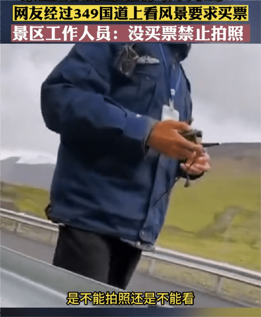网友听了后,本来觉得只是不让拍照,可是男子之后的话更令人震惊,其称:“风景是用来看的,就要买票,凡是来旅游的都要买票!”