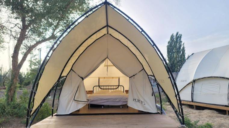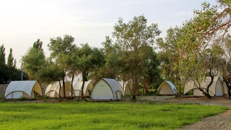 近郊村庄,农家院落;鸟语花香,空气清新。近日,在新疆库尔勒市西尼尔镇西尼尔村的探野露营基地内处处可见造型各异的帐篷、天幕,绿草地、氛围灯,充满着浓浓的田园风情。