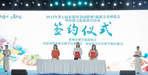 启动仪式上,儋州市美食行业协会与海南省酒店与餐饮协会,儋州市旅游协会与海南恒泰旅业集团、海南逍遥旅游投资集团股份有限公司、海南康泰旅游股份有限公司,儋州市研学旅行协会与海南省旅游协会研学行业分会、海南省青少年研学旅行协会等进行签约,约定互利合作,实现资源共享、优势互补,共同打造“大平台”、畅通“大通道”,推动儋州文化旅游、美食迈上新台阶、结出更多硕果。