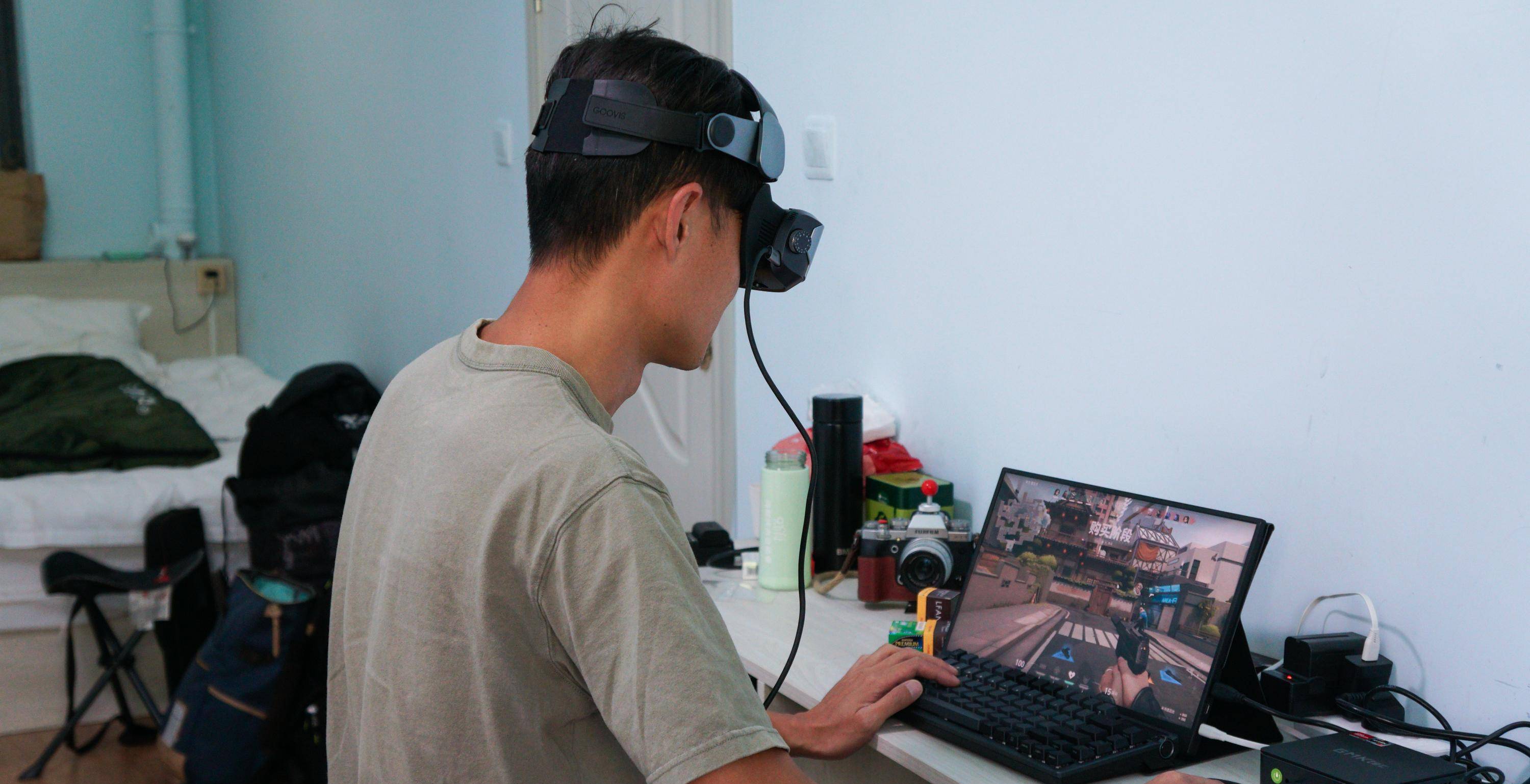 在家那会都是用便携显示器玩,现在用G3 Max后体验直接上了一波大分,更细腻的显示和刷新率是首先可以感受到的,封闭的光场和临场的音效带来了更沉浸的游戏体验。网络不好的时候我们也会玩一玩简单的自走棋和棋牌类的,因为担心网络不好导致坑队友,所以我们这几个老男人还是很有素质的对啵?