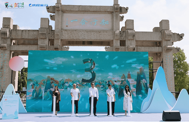 活动现场,携程集团政府合作部西南大区总经理易杨、贵州省研学旅行协会会长刘黔、贵州省研学旅行协会常务副会长周厚能与2位全国知名旅行达人代表,在现场及线上观看直播的数万观众的共同见证下,正式启动了“阳明·问道十二境”游学线路首发团,一场寻迹贵州文化精粹的游学之旅正式拉开帷幕。