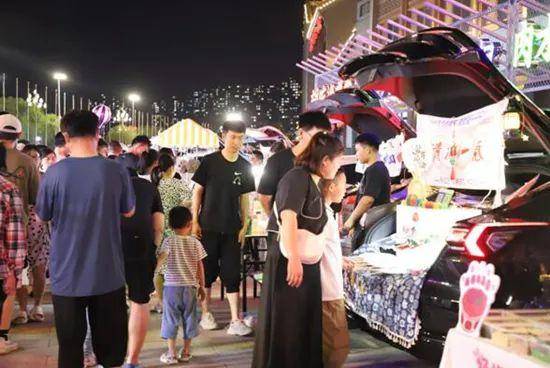 每晚7点半泰安老街、爱琴海购物公园华灯初上,近百名私家车主将汽车依次排列,泰安老街第二届后备箱市集商品繁多、热闹非凡。