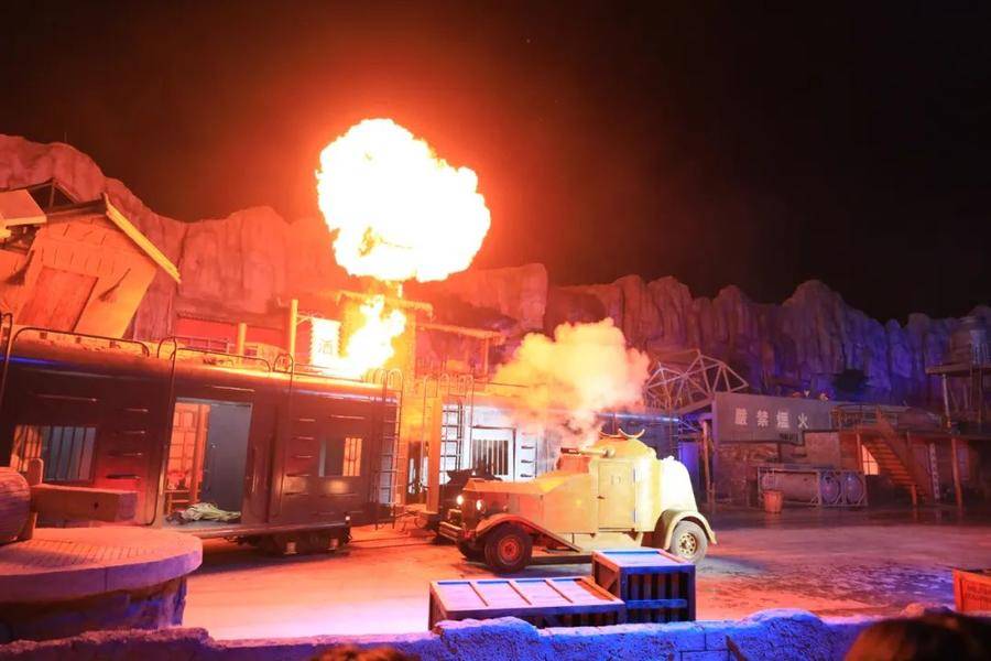 夜幕降临,白天恢弘壮丽的战场,在黑夜的映衬下气氛更加强烈,《铁道游击战》每周五、周六夜场加演,19点30分震撼开场,再现红色传奇。