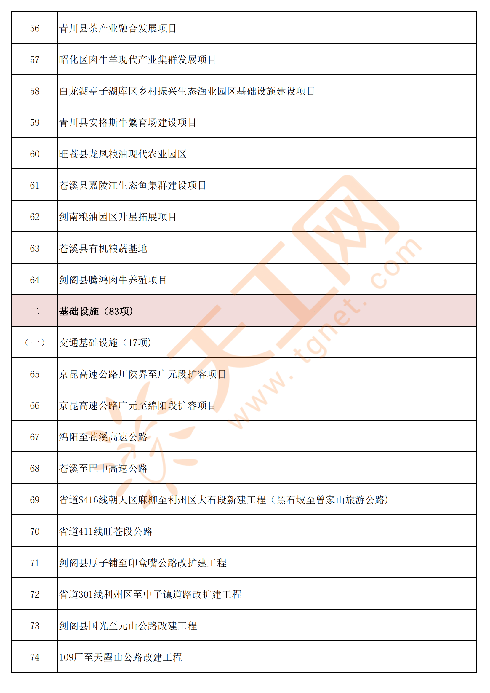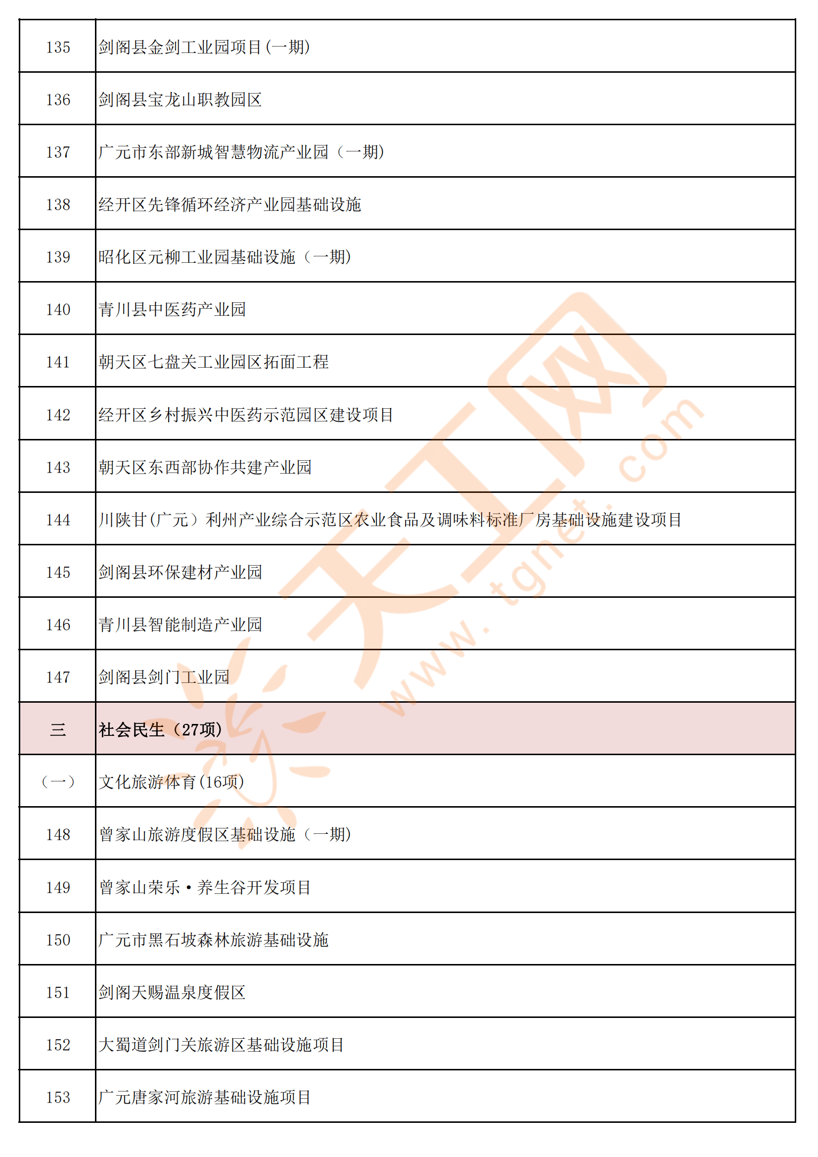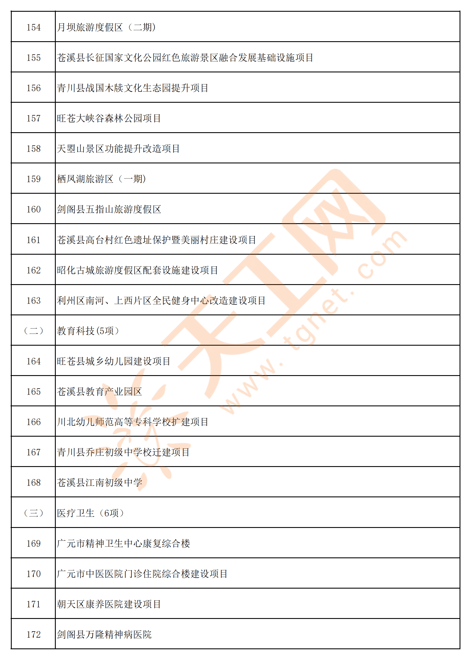 四川省广元市2023年重点(续建)项目名单,包含:绵阳至苍溪高速公路、苍溪至巴中高速公路、四川济广制药生产基地项目、广元(中欧〉国际木材物流园项目、广元国际铁路物流园项目、曾家山旅游度假区基础设施(一期)、旺苍县粮食现代仓储及冷链物流建设项目、苍溪县江南初级中学、青川县第一人民医院业务综合楼建设项目、月坝旅游度假区(二期)等180个项目。